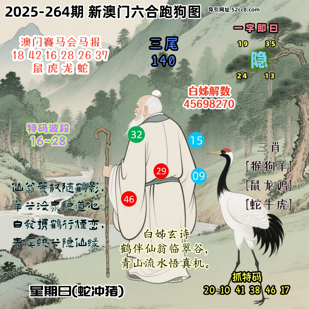 第264期:诗云:老翁信步,青山翠谷,仙鹤相伴意悠悠;岁月静好,瑞祥盈处,喜满田园梦不休。